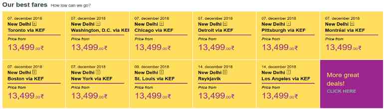 Lægstu fargjöld kosta ennþá 13.499 indverskar rúpíur eða rúmlega 21 þúsund krónur miðað við gengi dagsins. Ennþá er ekkert dýrara að fljúga til Íslands eða fljúga til Íslands og áfram til New York eða Los Angeles!!!