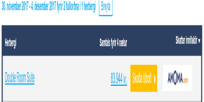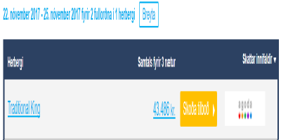 Svo er líka gist á bakaleiðinni í fjórar nætur á fjögurra stjörnu Sunset Vistas Suites og það kostar hjá okkur heilar 84 þúsund krónur eins og má líka sjá hér til hliðar.