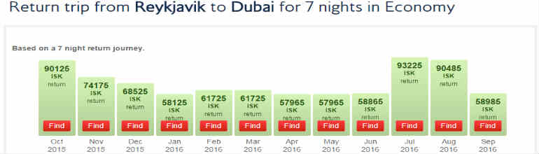 Þetta skiptir máli ekki aðeins vegna tímasparnaðarins heldur og hve mikill verðmunur getur verið á flug þessi dægrin. Fjögurra manna fjölskylda sparar 140 þúsund krónur á að fljúga til Dúbai í júní í stað júlí á næsta ári. Sömuleiðis sparar fjölskyldan 80 þúsund krónur að halda til Sidney Ástralíu í sama mánuði í stað júlí. Það eru fjármunir sem flesta munar um.