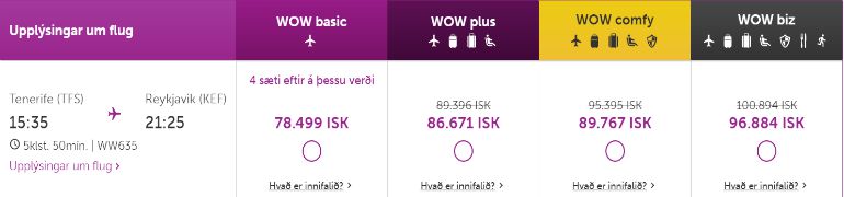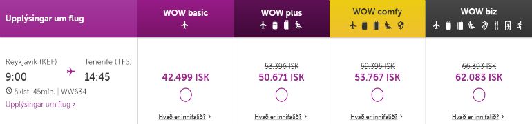 Nema þú heitir Jóakim Aðalönd, hafir unnið í Víkingalottóinu eða eigir helling af bitcoin rafmynt undir koddanum er ólíklegt að þú hafir mikil efni á að fljúga með „lággjaldaflugfélaginu“ Wow Air til Tenerife um miðjan febrúar.