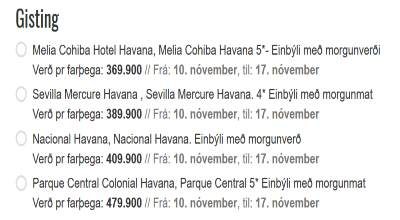 Leyfum okkur að endurtaka lægsta verðið: 739.800 krónur. Hmmm. Er það ekki dálítið vel í lagt fyrir vikutúr rúman til Havana á Kúbu?