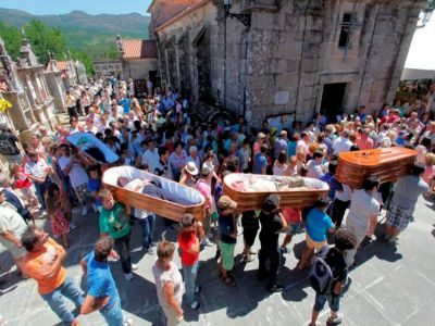 Fiesta de Santa Marta de Ribarteme – Las Nieves/Galisía – Á sama tíma og ungmenni á Íslandi gera sig klár fyrir Verslunarmannahelgi í Vestmannaeyjum fer fram æði undarleg hátíð í smábænum Las Nieves í Galisíu-héraði á Spáni. Formlegt heiti hátíðarinnar er Fiesta de Santa Marta de Riberteme en þó það hljómi óspennandi eykst sennilega áhugi fólks ef við breytum heitinu í hátíð þeirra sem heimtir voru úr helju. Það er fræðilega hugmyndin að baki hátíðinni; að þakka guðunum, eða í þessu tilfelli hinum kaþólska guði, fyrir að bjarga þeim sálum er voru nærri dauða en lífi sökum slysa eða veikinda en náðu sér á strik að nýju. Í Las Nieves gengur þetta svo langt að þeir einstaklingar sem heimtir voru úr helju eru bornir um miðbæjartorgið í opnum líkkistum inn í kirkju bæjarins þar sem þeir eru „heimtir úr helju.“ Það er í kjölfarið á því sem hátíðin breytist úr dauðateygjunum í eitt standandi partí langt fram eftir nóttu með tilheyrandi áfengi, flugeldum og veislustandi. Afar sérstakt en afar skemmtilegt líka 😉
