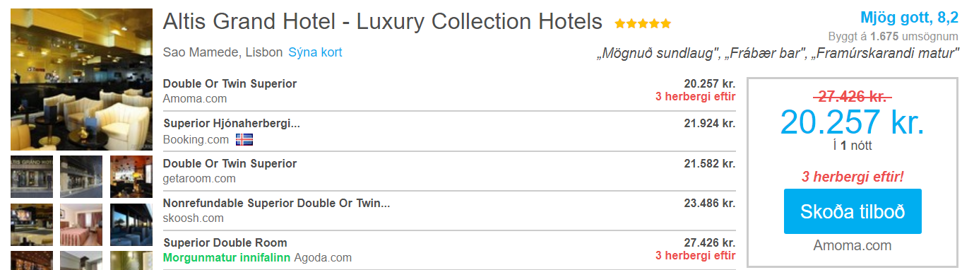 En hvað kemur í ljós? Ekkert nema að enn má halla höfði á fimm stjörnu hótelum í borginni fyrir tómt klink…
