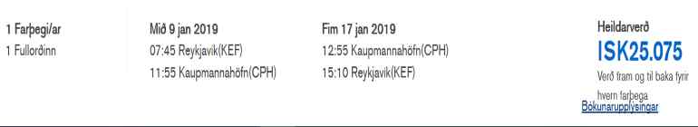 Það var og. Langi okkur hér í sama pakka og Kaninn fær á 37 þúsund kall á sardínufarrými þurfum við að gjöra svo vel að punga út tæplega 88 þúsund krónum á sama farrýminu!!! Það er 137 prósentum hærra verð fyrir nokkuð sömu vöruna.