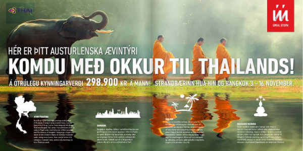 Sterk eru lýsingarorðin í auglýsingum ÚÚ vegna tólf nátta túrsins til Hua Hin og Bangkok í nóvember næstkomandi. Túr sem sagður er á aldeilis frábæru verði eða 298.900 krónur á mann miðað við tvo saman. Samtals tæpar sex hundruð þúsund krónur.