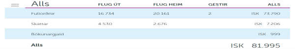 Niðurstaðan er því sú að í stað þess að grípa umhugsunarlaust þetta sérstaka „jólatilboð“ Gamanferða þá spara hjón eða par sér tæplega 40 þúsund krónur með því að eyða sirka fimm mínútum í að bóka ferðina sjálf. Það líklega hæsta tímakaup sem þú hefur nokkurn tíma fengið 🙂