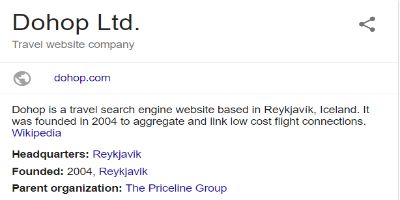 Það er engu að síður þær upplýsingar sem birtast á vef Google sé þar leitað að Dohop.