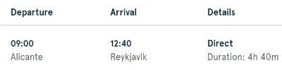 Það hljómar nokkuð eðlilega. Í það minnsta þangað til fólk skoðar uppgefinn flugtíma hjá Norwegian sem sjá má hér til hliðar. Þar sést svart á hvítu að Norwegian kemur farþegum sínum frá Alicante heim 25 MÍNÚTUM fljótar en Wow Air. Primera Air auglýsir svipaðan flugtíma og Norwegian.