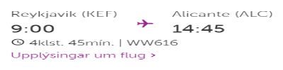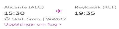 Flugtími Wow Air til Alicante. Skjáskot
