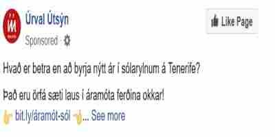 Makalaus lesning þetta kvöldið. Ferðaskrifstofan Úrval Útsýn auglýsir allra síðustu sætin í áramótaferð sína til Tenerife á fésbókinni.