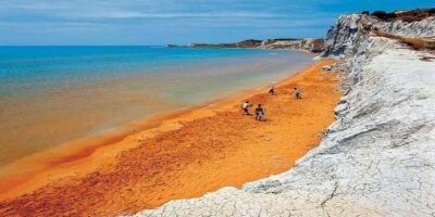 Þú last þetta rétt. Appelsínugular strendur er eitthvað sem enginn á von á neins staðar í veröldinni þó vissulega sé vitað að sandur sá sem safnast fyrir á hinum ýmsu ströndum geti verið mismunandi að lit. Hvítur sandur og afbrigði af hvítum algengast víðast hvar um heiminn en eins og við Íslendingar þekkjum eru svartar strendur ekki óþekktar heldur. Þá finnst að minnsta kosti ein marglit strönd í Ástralíu og þær efalítið fleiri strendurnar í merkilegum litum.