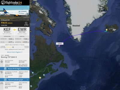Jómfrúarferð glænýrrar þotu Icelandair, þeirrar fyrstu frá því á síðustu öld, og enginn fréttir af því. Skjáskot