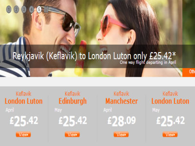 Þar er til dæmist auglýst flug Keflavík til Luton frá 26 pundum aðra leiðina´í apríl. Sem útleggst sem 5.053 krónur samkvæmt myntbreytinum okkar. Það er strípað verð án farangurs og þjónusta skorin við hefðbundna nögl en fjandakornið samt brilljant verð.