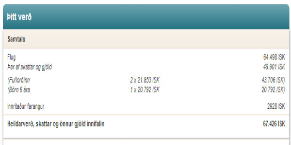 Bestu verð Icelandair eru óravíddum fjarri því verði sem Lísa og fjölskyldan hafa tryggt sér með öðrum eins og sjá má.