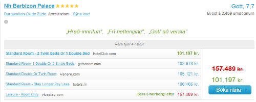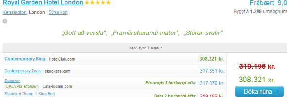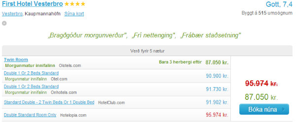 * Samanburður gerður kl. 20 þann 3. september 2013. Hótel valin af handahófi. Verð breytast ört og mikið en endilega látið á reyna sjálf og sannfærist.
