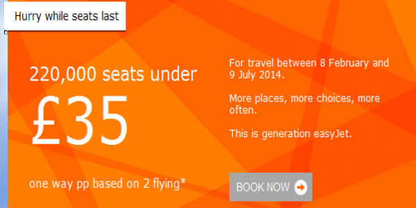Miðað við miðgengi breska pundsins gagnvart krónunni íslensku eru 35 pund nú alls 6.732 krónur. EasyJet auglýsir nú 220 þúsund flugmiða sem á lægra verði en það.