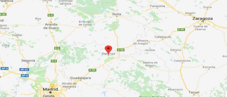 Bærinn Sigüenza finnst í rúmlega klukkustundar fjarlægð frá höfuðborginni Madríd til norðausturs.