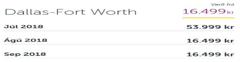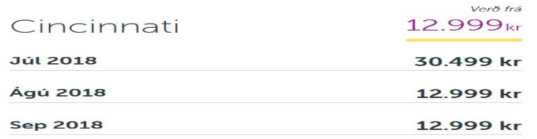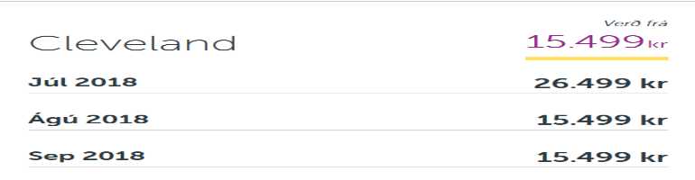 Ef Cinncinnati, Dallas og Cleveland væru virkilega að heilla landann, og eða túr til Evrópu að heilla heimamenn í umræddum borgum, sem þykja allar krummaskuð á bandarískum mælikvarða, væri ekki hægt að negla flug aðra leiðina á sama lágmarksverði og Wow Air auglýsti sem sérstakt kynningarverð þegar þessar nýju flugleiðir voru kynntar. Þá værum við að tala um töluvert hærri verð en við sjáum hér að ofan.