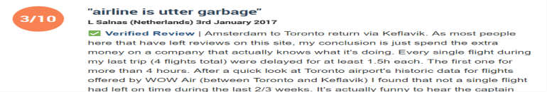 Aðeins er tímaspursmál áður en Wow Air fellur niður í þrjár stjörnur á einkunnavef Skytrax eftir að hafa náð upp í sjö stjörnur þegar best lét. Ágætt að hafa í huga að hið miður ágæta flugfélag Iceland Express hékk líka í þremur stjörnum á þeim virta lista og ekki kunnu Íslendingar sérstaklega vel við það flugfélag.