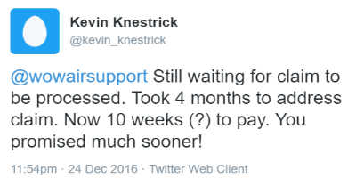 En það virðist hrein og klár hátíð miðað við nýleg ummæli á tístvef Wow Air sem sjá má hér til hliðar. Þar kvartar einstaklingur yfir því að hafa beðið fjóra mánuði eftir að flugfélagið tæki kvörtun hans til skoðunar og í kjölfarið fengið þau skilaboð að hann fengi bætur að tíu vikum liðnum!!!